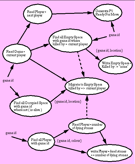 all not-alive stones are killed (occupied spaces migrate to empty)